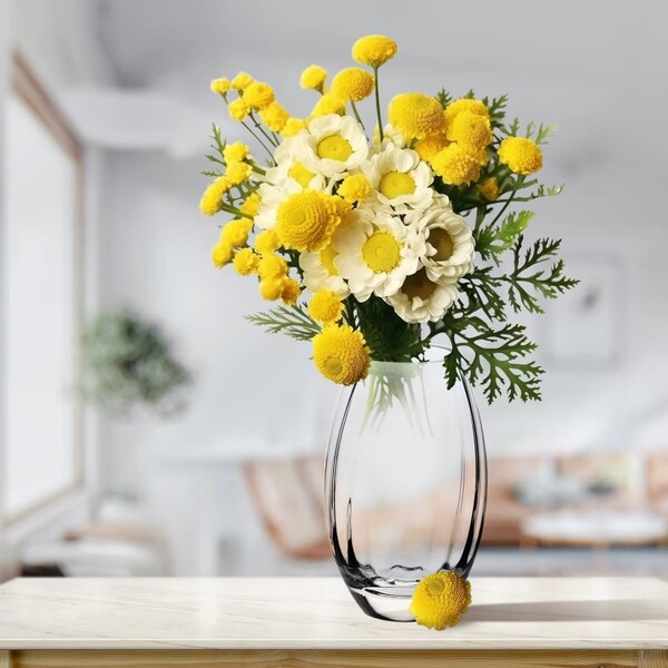 Features: The timeless design of the barrel shape not only looks elegant but also provides a stable base for a variety of floral arrangements, enhancing the decor of any room.The subtle vertical ridges add a decorative touch that plays with light and shadows, enhancing the visual appeal and making the vase a standout piece.The robust construction with thick glass walls ensures longevity and resilience, protecting against chips and cracks while maintaining a luxurious feel.