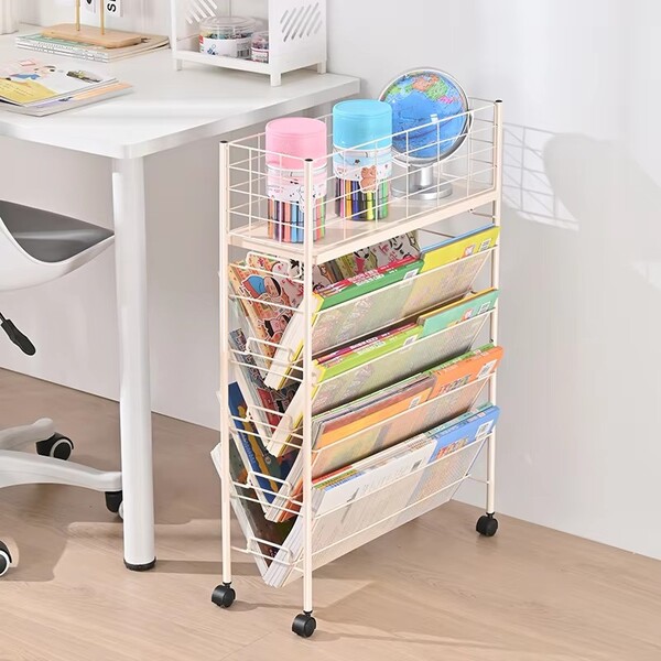 Features: 60° tilt storage, easy to pick up and place books, high shelf design to prevent items from falling off, 4 wheels, easy to move (2 with brakes) .