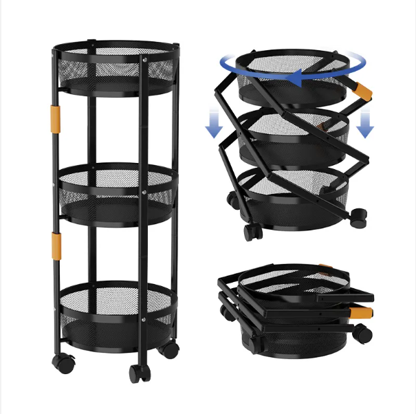 Features: Multi-purpose utility trolley with 3 baskets and a space-saving maximum load capacity of 6kg per tray, which folds down to save space when not in use. Sturdy and lockable for added stability. Easy to carry, no assembly required.