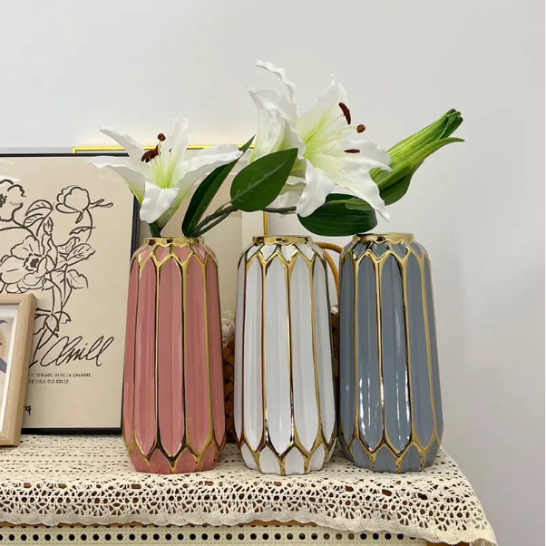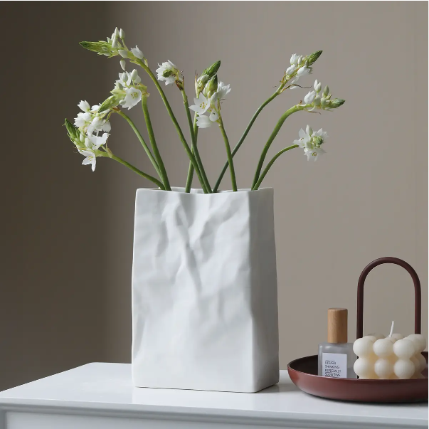 2Pcs Modern Scandinavian Paper Bag Shaped Ceramic Vase