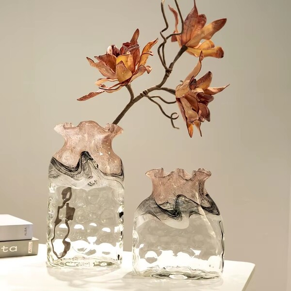 Pink Ink Landscape Gradient Handmade Glass Vase Set